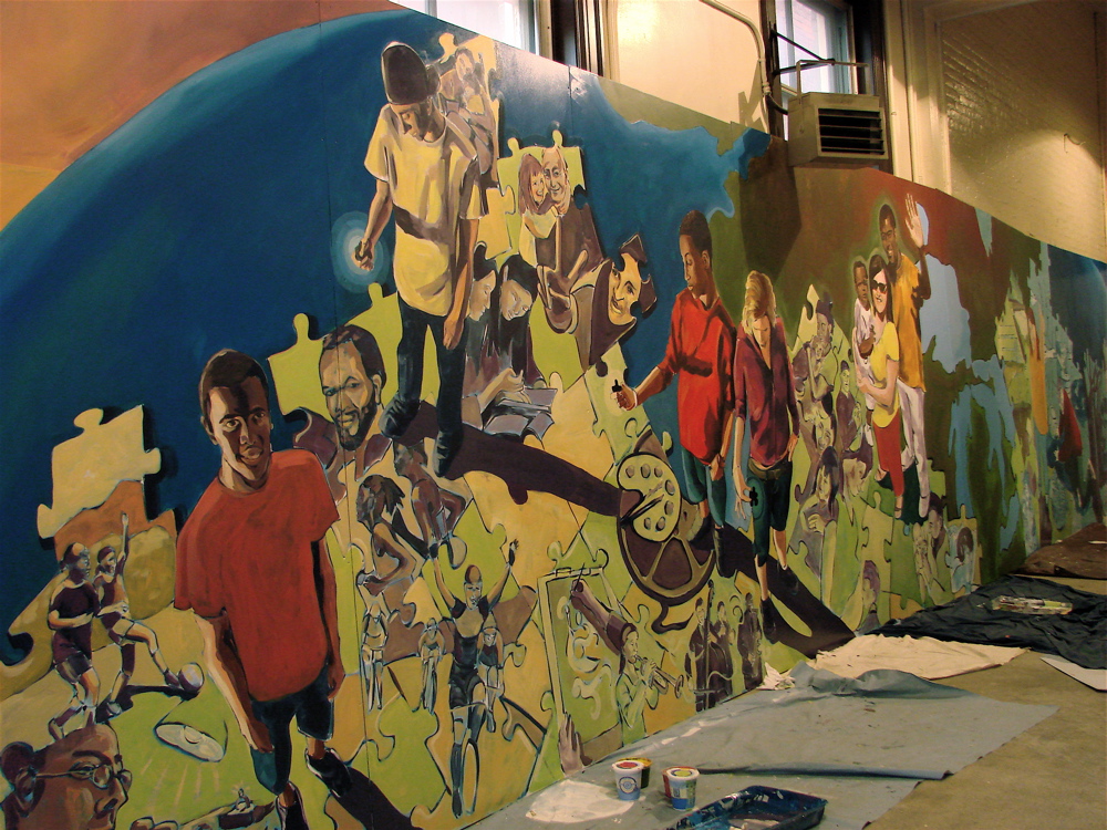 The first step was to put together the artistic team. The Ypsilanti area art teachers were contacted and asked for recommendations within their departments. The idea was to extend this opportunity to students heading into an arts related career. The students selected were: Chelsey and Travis from Lincoln High School, Jesse, Terrance, and Devon from Ypsilanti High School. Once the team was put together we decided on a weekly meeting time. Meeting every Thursday from February 2008 to July 2008 this team of artists assisted in designing, material selection, budgeting, implementing, and painting, the 8x 48-paneled mural.