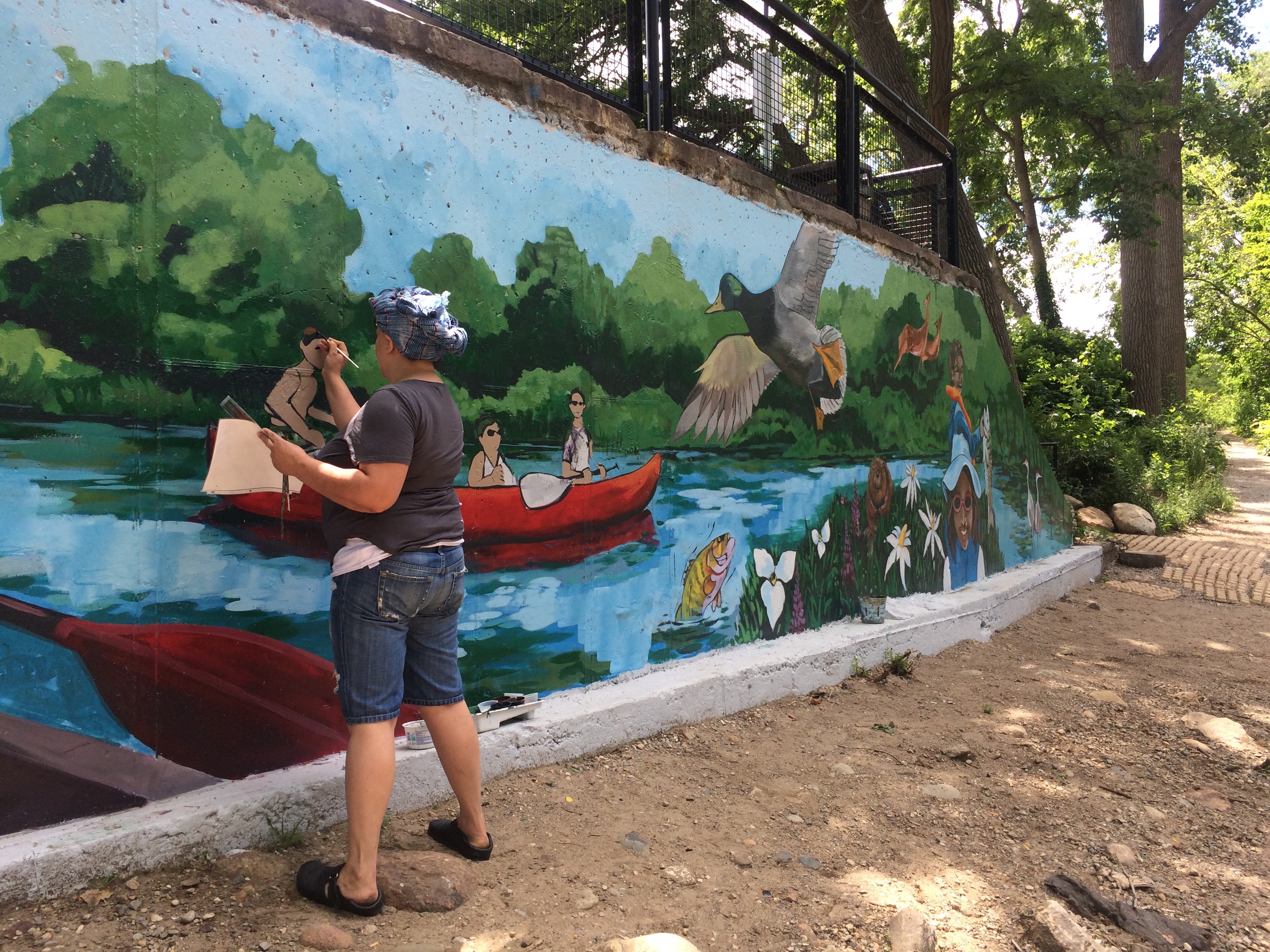 Frog Island Mural – Frog Island Park, Ypsilanti Michigan Public Art Watch the video of how it was made here! [Show as slideshow] Skills Posted on June 1, 2018 ← University of Michigan – Detroit Urban Garden Mural – Grace Lee Boggs Lounge SESLA – Scarlet Middle School Mural Project →