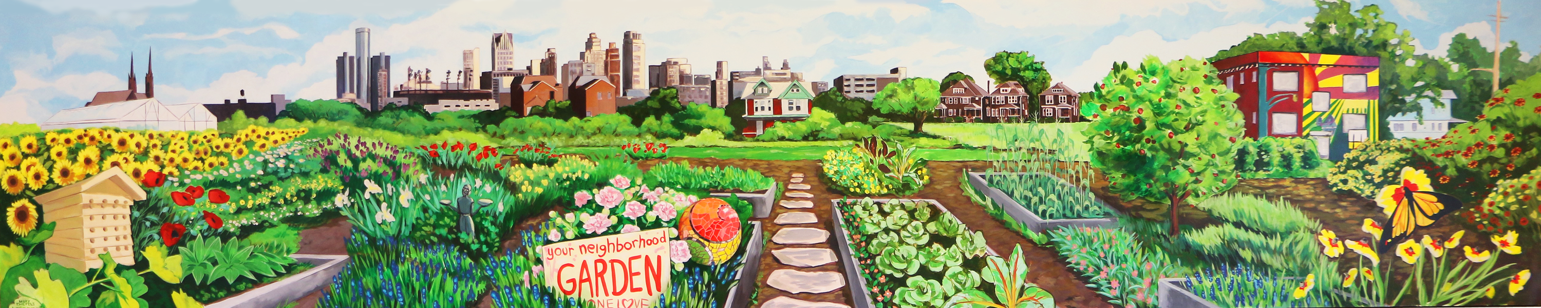 University of Michigan – Detroit Urban Garden Mural – Grace Lee Boggs Lounge Schools + Centers Celebrating Grace Lee Boggs. This mural reflects the unique nature and nurture happening in the city of Detroit, MI. [Show as slideshow] Skills Posted on September 3, 2016 ← Neutral Zone Teen Center Frog Island Mural – Frog Island Park, Ypsilanti Michigan →
